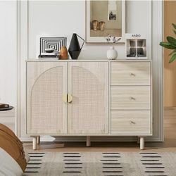 Sideboard Buffet Cabinet with Storage - Rattan 2 Door 3 Drawer Cabinet, Accent Storage Cabinets with Wicker Door, Boho Wood Credenza for Living Room, $87Fontana, CA