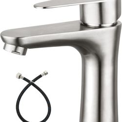 Bathroom Faucet Single Handle 1 Hole SUS304 Stainless Steel Deck Mount Lavatory Single Switch Basin Sink Faucet Without Pop Up Drain and Cold Water On$30Compton, CA