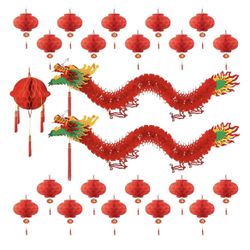23Pcs Chinese New Year Decorations 2026 with 2 3D Chinese Dragon Decoration and 1 Red Ball and 20 Red Plastic Paper Lanterns for Spring Festival Party$15Downey, CA
