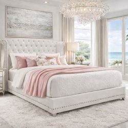 Glam Style Queen Size Wingback Bed White Velvet$899Downey, CA