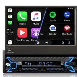 Estéreo de automóvil de un solo DIN compatible con Apple Carplay y Android Auto, pantalla táctil HD plegable motorizada con flip de 7 pulgadas, cámara$80Ontario, CA