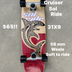 Skateboard Cruiser 31x9 SolRide 58 Mm Weels Soft Ride $65 !!New!!$65Rancho Cucamonga, CA