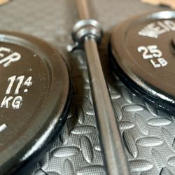5 ft Standard Barbell with pairs of 25s, 10s and 5 pounders [ All Vintage and reconditioned equipment). Brute Weight= 95#$140Los Angeles, CA