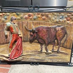 Paper mache painting with iron frame with hanging on back wall art MAKE AN OFFER!$220San Bernardino, CA