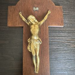 Vintage Wood Crucifix With Brass Jesus Christ Catholic Cross Jesus Wall Decor$40Downey, CA