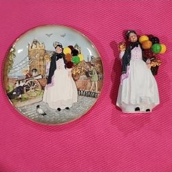Biddy Penny Farthing D6666 Plate & HN1843 Figurine, Royal Doulton 1981$125Pasadena, CA