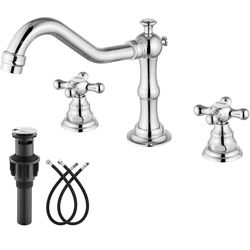 Bathroom Faucet 3 Hole 8 Inch Widespread Bathroom Sink Faucet 2 Cross Handles Vintage Lavatory Vanity Mixer Tap with Pop Up Drain, HOT Cold Label, Pol$55Lynwood, CA