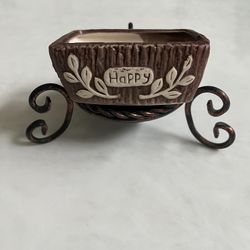 🌿 Decorative Ceramic Succulent Planter (NO Metal Stand) | “Happy” Design | $9 Firm 🌿$9Diamond Bar, CA