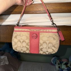 Coach Mini Purse Brown Monogram Wristlet Pink Trim Small Bag Y2K Style$65Santa Ana, CA