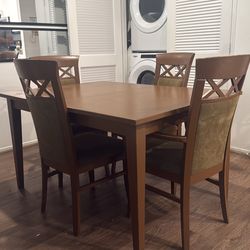 Adjustable Teakwood dining table with 4 chairs.$150Tustin, CA