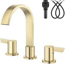 Aolemi Bathroom Faucets 3 Hole,8 Inch Widespread Waterfall Bathroom Sink Faucet,2 Handles Vanity Faucet with Pop-up Drain and Supply Hose,Gold$58Ontario, CA