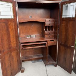 Armoire Cabinet Secretary Desk Kids Desk Roll Out Desk Cabinet Glass Cabinet $40Rancho Cucamonga, California