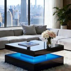 Modern Black Coffee Tables for Living Room - LED Coffee Table with Lights, High Glossy Minimalist Modern Coffee Table, 31'' Square Center Table $95Arcadia, CA