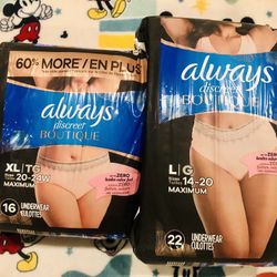 Always Discreet Boutique Size XL Or L. Price Is Per Pack.$8Lake Elsinore, CA