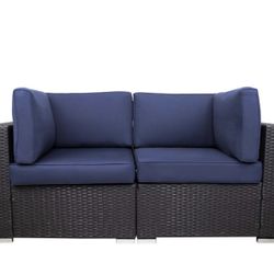 1601d Patio Sectional Furniture Corner Sofa,Low Back All-Weather Wicker Loveseats Outdoor Rattan Couch Set Conversation Sets๏ผDark Blue๏ผ$100Bloomington, CA