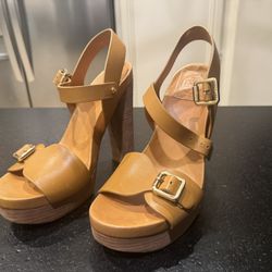 Tory Burch Tan Tatum Leather Chunky Platform Stacked High-Heel Sandals New$85Mission Viejo, CA