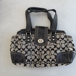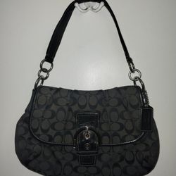 VTG Coach F17093 Soho Flap Hobo Bag Black Signature Canvas Leather Shoulder Bag$300Hemet, CA
