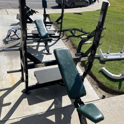Bench press/squat rack with 7ft 40lbs bar plus 240lbs of Olympic weights and tricep bar$380Moreno Valley, CA