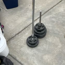 Olympic weights 255lbs total plus 7ft 45lbs bar and curl bar$280Moreno Valley, CA