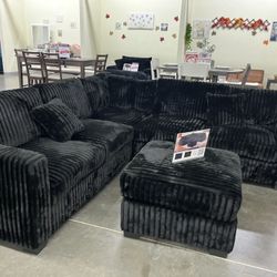 New 4 Piece Brand New Black Plush Corduroy Sectional With Accent Pillows Was 1199 Online We Have It Right Now Two Left For 499 Texas 760-508-4797$499Oceanside, CA