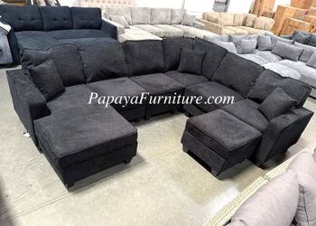 NEW Large U Shape BLACK Chenille Fabric Sectional Sofa and Chaise with Ottoman Set Ashley Style Designer BIG Couch SALE Discount Furniture Warehouse$799San Bernardino, CA