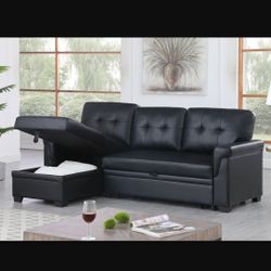 Black Leather Sectional Sofa Sleeper New $369Santa Ana, CA