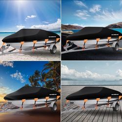 Heavy Duty Pontoon Boat Cover with Support Poles - 1200D Waterproof Pontoon Boat Cover 25-28 ft, Includes Motor Cover & 18 Tie-Down Straps for Windpro$160Irvine, CA