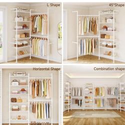 Rack Clothes Racks with 2 Telescopic Rod & 6 Shelves, Heavy Duty Closet Organizers System in Wardrobe Closet, White$60Fontana, CA