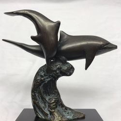 Vintage double dolphin cast statue w/ wooden base 8" X 7" inches Beautiful!$75Corona, CA