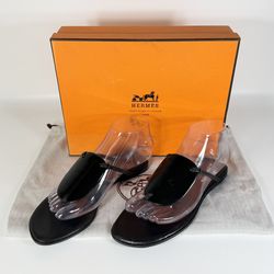 HERMES Women's Black Leather Flat Sandals - Size 36 - Made in Spain$320Irvine, CA