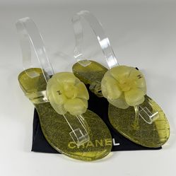 Chanel Camellia Yellow Glitter Jelly Thong Flat Slides Sandals - Size 36 / US 6$220Irvine, CA