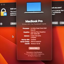 MacBook Pro 13 inch 2017$400Bloomington, CA