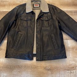 Large Levi's Mens Faux Leather Sherpa Collar Trucker Jacket Brown $30Laguna Hills, CA