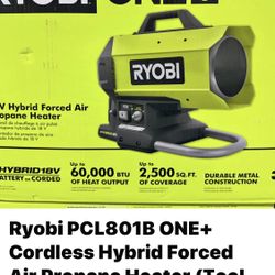 Ryobi PCL801B ONE+ Cordless Hybrid Forced Air Propane Heater (Tool Only)$125Corona, CA