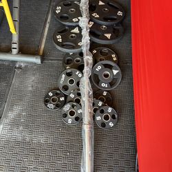 Commercial urethane Olympic weights 280lbs total plus 7ft 45lbs bar$380Moreno Valley, CA
