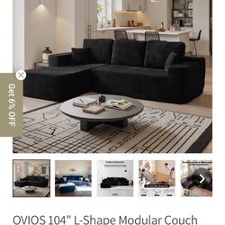 OVIOS 104" L-Shape Modular Couch with Chaise,Corduroy Fabric,No Assembly Required$300Bloomington, CA