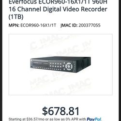 Everfocus ECOR960-16X1/1T 960H 16 Channel Digital Video Recorder (1TB)$500San Diego, CA
