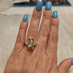 Beautiful ring made of sterling steel with 14K gold plating. Features a large yellow emerald-cut stone with sparkling side Accents.$125Chula Vista, CA