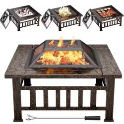32” Outdoor Fire Pit Table – Metal Brown w/ Cover & Poker (New)$60Lincoln Acres, CA