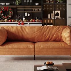 73'' Mid-Century Modern Couch, Small Loveseat, Orange Fabric Solid Wood Frame, Comfy Cushions, Tool-Free Assembly, for Office, Living Room, $165San Diego, CA