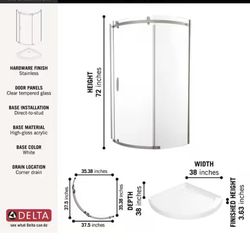 38 in. W x 72 in. H Round Sliding Frameless Corner Shower Enclosure in Stainless with Clear Glass$300San Diego, CA