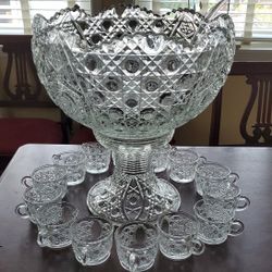 Vintage L.E. Smith Glass Co. Daisy And Button Pressed Glass Punch Bowl Set$55Chula Vista, CA