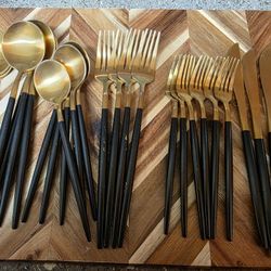 This is a black and gold stainless steel flatware set. $15San Diego, CA