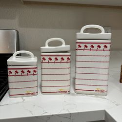 In-N-Out Burger Ceramic Canister Set of 3 With Lids Red White Palm Tree Design$40San Diego, CA