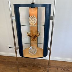 Post Modern Lighted Glass Display Cabinet – Curved Blue Wood & Metal Curio Shelf$270San Diego, CA