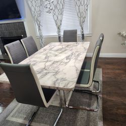 Gray And White Marble Table With 6 Chairs And Rug$570El Cajon, CA