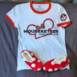 Disney Mickey Mouse Club Mouseketeer ringer T-shirt & matching slippers - Women's Small$9San Diego, CA