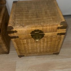 Mid-20th Century Petite Wicker Chinoiserie Storage Chests Set Large And Small $250San Diego, CA