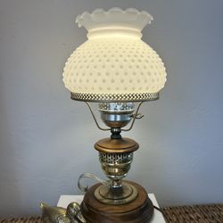 Vintage Milk Glass Hobnail Lamp Brass Wood Details Table Lamp Lighting Retro $60San Diego, CA