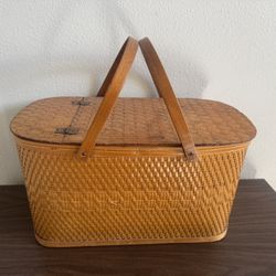 Vintage Mid Century Hawkeye Wooden Wicker Picnic Basket Burlington$75Escondido, CA